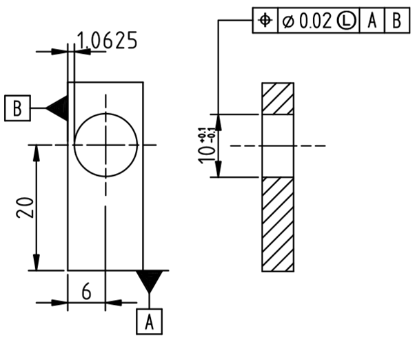 The second section of FCF gives information regarding tolerance value, shape of tolerance and material modifier condition of that feature. Ø symbol specifies a circular tolerance zone otherwise it is taken as two parallel planes or wide tolerance zone according to the geometric characteristic symbol. The value indicates the allowable deviation from the basic feature. The material modifier conditions are two types: Maximum Material Condition (MMC) & Least Material Condition (LMC). They are useful because they can add bonus tolerance to the feature. If it is not specified then the condition is known as Regardless of Feature Size (RFS) and the tolerance remains same for a feature.